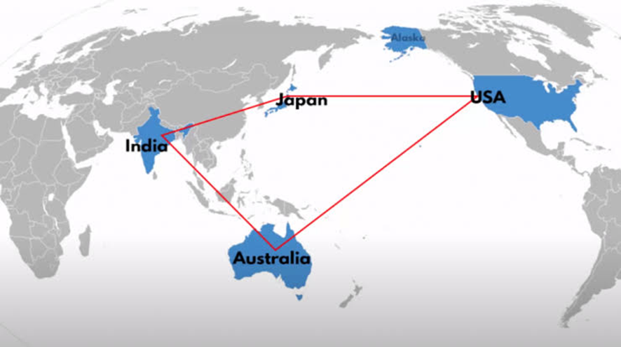 Mapa con los países miembro del QUAD. Recuperado de: https://iasbio.com/quadrilateral-security-dialogue-quad-upsc-notes/#google_vignette