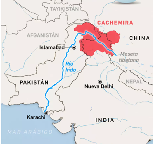 Mapa del Río Indo. Fuente: El Debate. Recuperado de: https://www.eldebate.com/internacional/20250508/tratado-aguas-rio-indo-entre-india-pakistan-ruptura-podria-desatar-guerra_293814.html