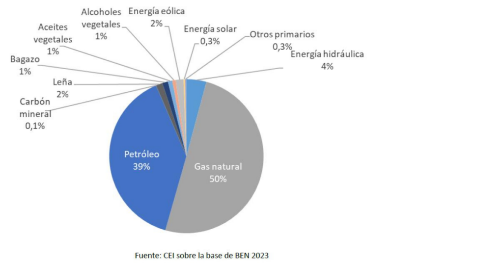 La transición energética argentina debe entenderse en el marco de una tendencia global. El consumo mundial de energía ha estado dominado por los combustibles fósiles durante los últimos dos siglos, y recién en las últimas décadas las renovables comienzan a desarrollarse y crecer. Argentina reproduce esta lógica, aunque con particularidades propias como la centralidad del gas natural y el desarrollo de Vaca Muerta. En Argentina, la generación de electricidad proviene en gran medida de diversas fuentes. En el Balance Energético Nacional 2024 indica que la producción primaria alcanzó 83.949 TEP, compuesta principalmente por gas natural (50%) y petróleo (39%), mientras que la hidroeléctrica representó 4% y la eólica 2%. (CEI, 2024, p.10).